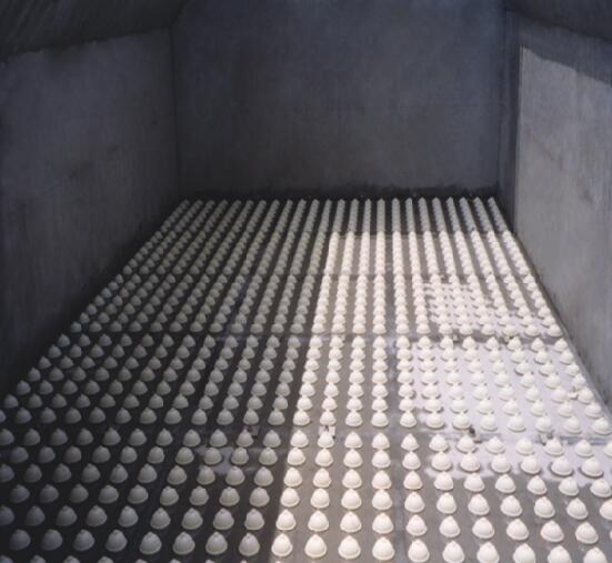 高精度钢筋混凝土滤板四边采用半燕尾槽形结构,滤板铺设后的接缝用高强度复合胶泥填缝,保证不收缩、不漏气、密封严密、强度好并同滤板连为一体。为各种新型滤池单气冲、单水冲、气水联合反冲等多种工况下长效、稳定运行提供了可靠保证。