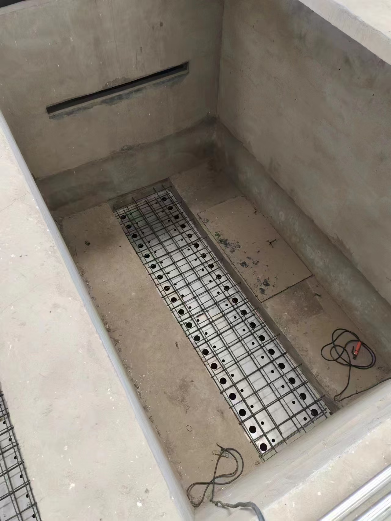 竖向配水管和竖向配气管材质为不锈钢,配气管上设有进气孔。竖向配水管和配气管滤池中间配水渠顶板施工时预埋确保配水配气管顶部底部的标高一致。