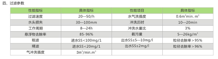 呈柔性、可压缩、孔隙率大、截污能力强;工作时滤层孔隙上疏下密,符合理想滤层的孔隙分布;比重略大于水,易反复冲洗,材质优良有较强的耐磨性和抗化学侵蚀性能。